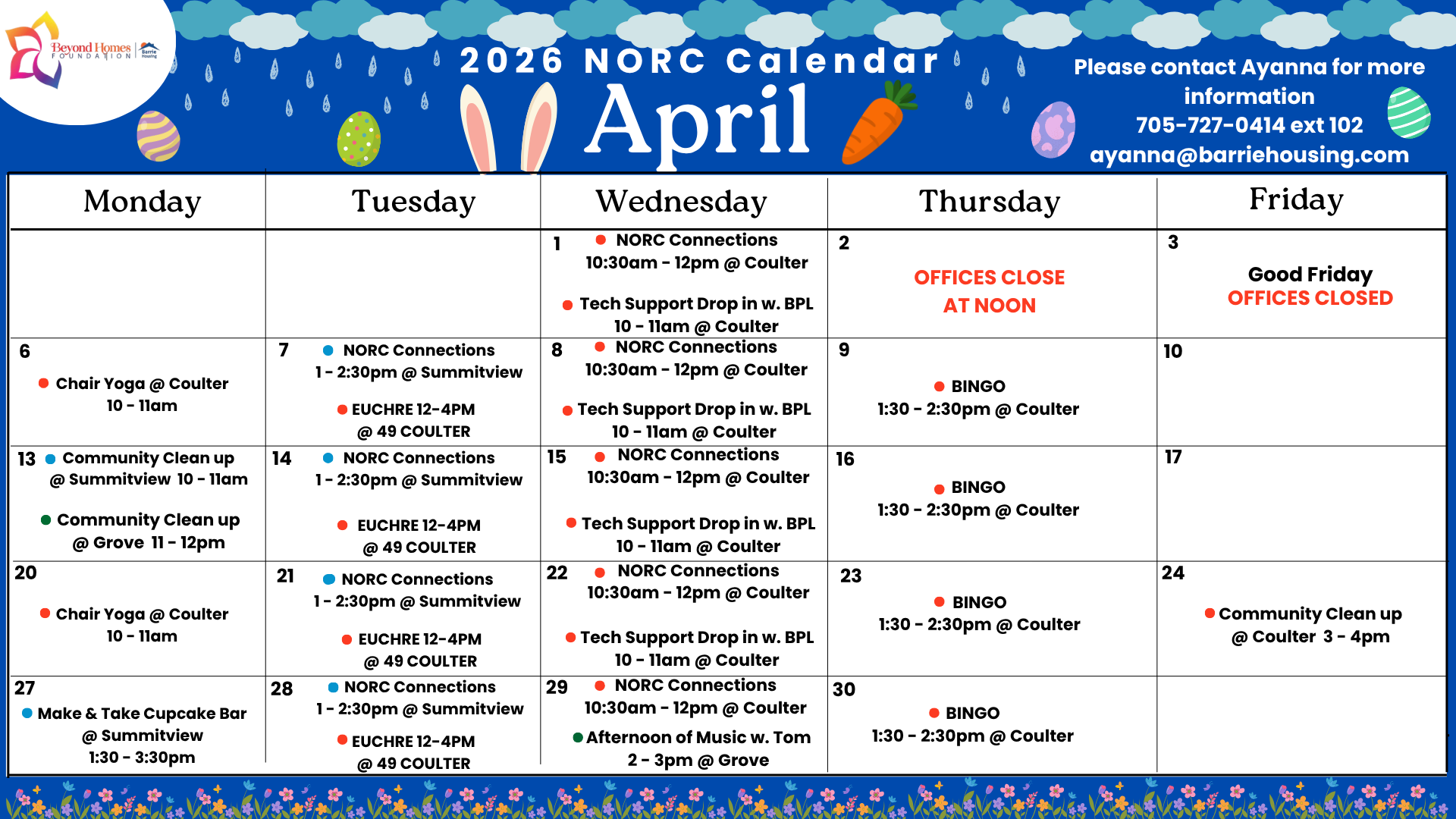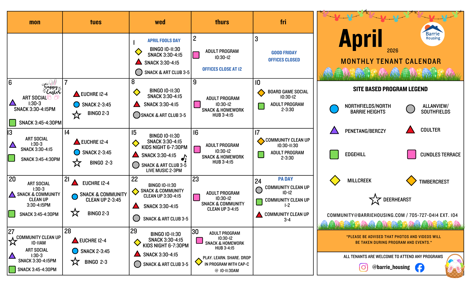 Offered through the Community Development Department, Barrie Housing provides a variety of free programs and events open to all tenants. These initiatives are thoughtfully designed to offer valuable support and educational opportunities fostering a stronger and more connected community.